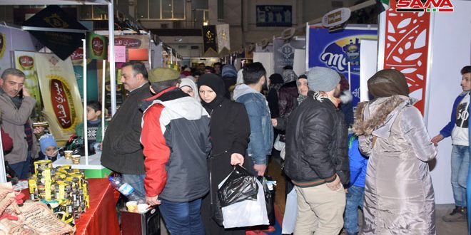ويتضمن المهرجان الذي يستمر ثمانية أيام عرض منتجات غذائية منوعة وألبسة وأقمشة نسيجية وأنواع الصابون الحلبي والمنظفات ومواد التجميل.