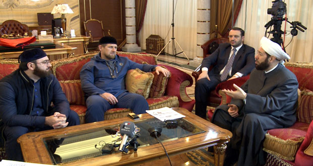 وأعرب الرئيس قاديروف خلال لقائه سماحة المفتي العام للجمهورية الدكتور احمد بدر الدين حسون في غروزني الليلة الماضية عن وقوفه وتضامنه مع سورية مشيرا إلى جهود بلاده في توعية الشعب الشيشاني بأن الحرب على سورية هي حرب يشنها أعداء الاسلام وقال ” إن النصر سيتحقق لنا جميعا في أقرب وقت”.