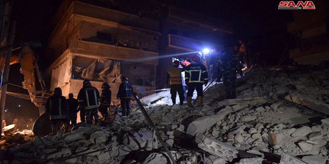 وأوضح الدكتور معد مدلجي رئيس مجلس مدينة حلب في تصريح لمراسل سانا بحلب أنه فور انهيار المبنى سارعت طواقم وأفراد الدفاع المدني والإسعاف والإطفاء ومجلس المدينة للموقع وبدأت عمليات إزالة الأنقاض والبحث عن باقي أفراد الأسرة كما تم إخلاء المباني المجاورة تحسبا لأي طارئ.