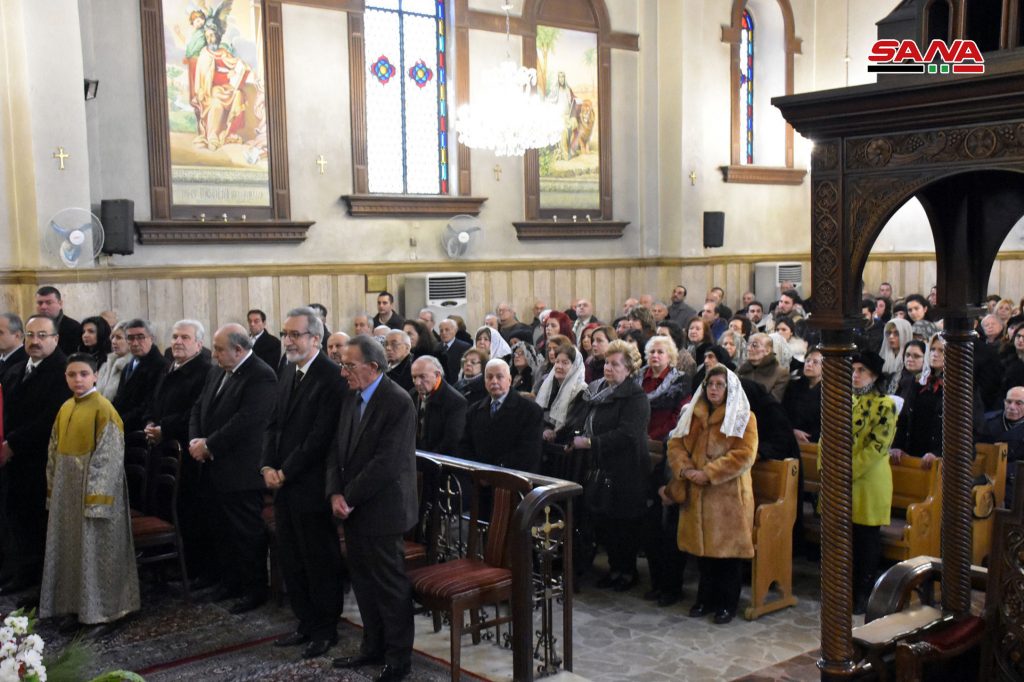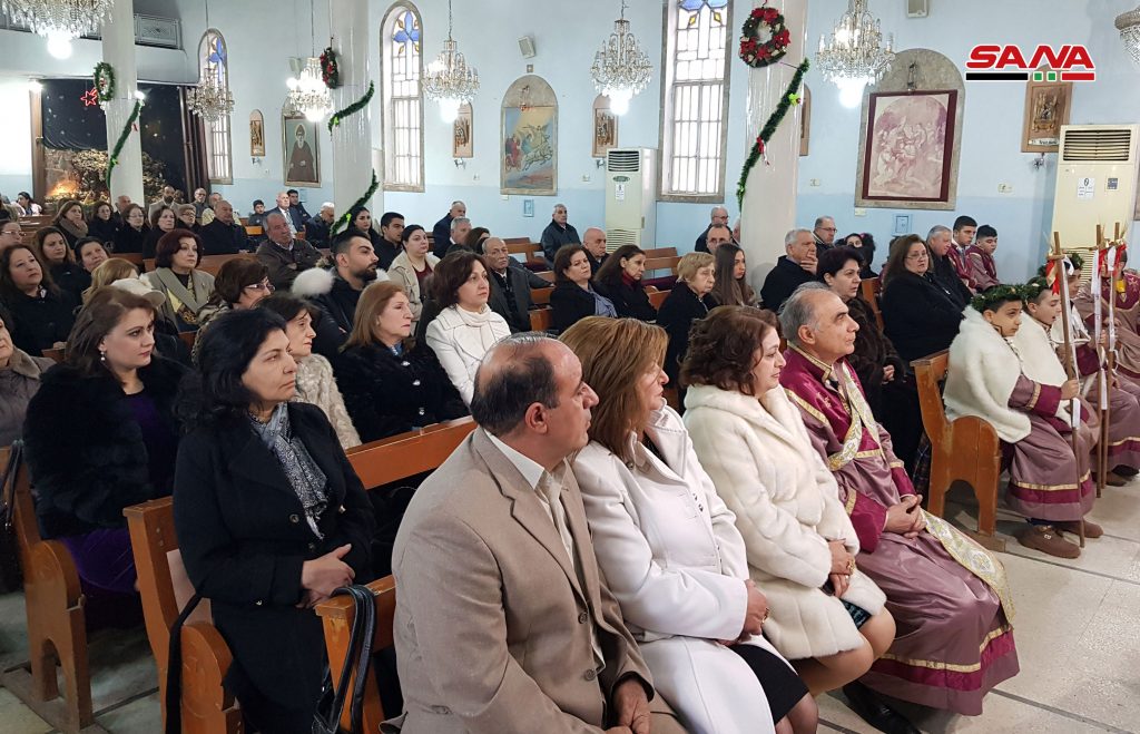 وأشار زيرنتسيان في كلمة له الى معاني عيد الميلاد والفرح والسلام الذي يحمله لجميع السوريين مؤكدا أن سورية تعيش أيام الانتصارات حاليا بفضل تضحيات الجيش العربي السوري وصمود شعبها وقيادتها .
