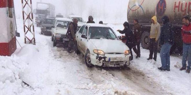 أدت العاصفة التي تضرب مناطق الحوض الشرقي للبحر الأبيض المتوسط إلى قطع الطريق الدولي الرابط بين سورية ولبنان وإحداث أضرار في العديد من المناطق اللبنانية.