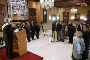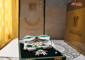 وعقب تقلده الوسام أعرب السفير صعب عن شكره وامتنانه للسيد الرئيس بشار الأسد على منحه هذا الوسام وعلى الدعم والعناية التي تلقاها من مختلف الموءسسات السورية لتسهيل تأديته مهامه سفيرا لبلاده.