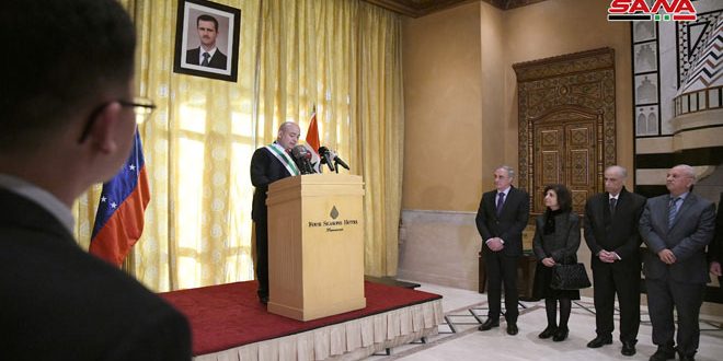 وبين الدكتور سوسان أن السفير الفنزويلي كسب خلال سنوات عمله في سورية تقدير ومحبة الجميع وذلك من خلال نشاطه ومشاركته للسوريين سنوات صعبة فكان شاهدا على عزيمتهم في التصدي للعدوان على بلادهم كما أنه عايش الانجازات المتلاحقة لسورية ضد فلول الإرهاب.