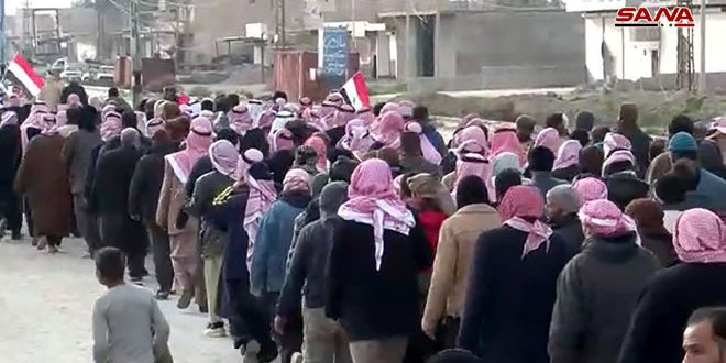 عودة نحو 300 شخص من المهجرين بفعل الإرهاب إلى مناطقهم عبر ممر الصالحية بدير الزور- فيديو