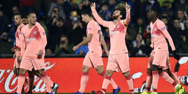 واصل برشلونة تربعه على صدارة الدوري الإسباني لكرة القدم بفوزه اليوم على خيتافي بهدفين مقابل هدف واحد.