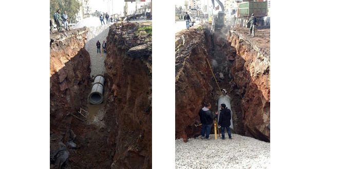 يواصل فرع الشركة العامة للمشاريع المائية بحمص تنفيذ مشروع الصرف الصحي للخط الرئيس في حي الوعر الذي كان متوقفا لأعوام جراء الأزمة.