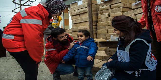وذكرت منظمة الهلال الأحمر العربي السوري في بيان تلقت سانا نسخة منه أن شعبة الهلال الأحمر في السفيرة وزعت معاطف وألبسة شتوية وأغطية للأهالي العائدين إلى ريف حلب الجنوبي ضمن 84 قرية وذلك بدعم من اللجنة الدولية للصليب الأحمر.