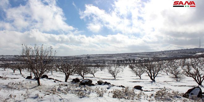 الثلج في بلدتي حضر وجباثا الخشب بريف القنيطرة الشمالي