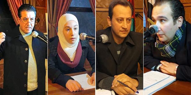 ترخي الحرب على سورية بظلالها على النتاجات الأدبية الحديثة بصور مختلفة وهذا ما بدا في اللقاء الأدبي الذي أقامه المركز الثقافي في الميدان لثلاثة شعراء وقاص ألقوا نصوصا عبرت عن رؤيتهم وتفاعلهم مع الظرف الراهن.