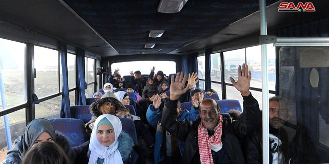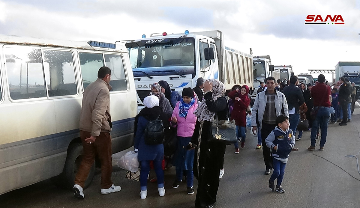 من جهته عبر فرحان شاهين عن سعادته الكبيرة بعودته إلى بلدته في الغوطة الشرقية بعدما أعاد الجيش العربي السوري الأمن إليها بينما أشارت خديجة الحناطي إلى شعورها بالسعادة والفرح بعودتها إلى وطنها حيث ينتظرها أهلها وأقاربها بعد غياب سنوات.