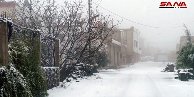 السويداء-سانا غطت الثلوج خلال الساعات الماضية المناطق المرتفعة بالسويداء، وأدت لحدوث تراكمات بسماكات متفاوتة