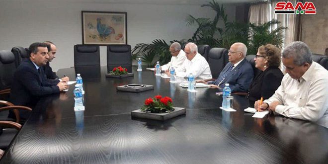 وخلال لقائه سفير سورية لدى كوبا إدريس ميا في مقر مجلس الوزراء الكوبي بالعاصمة هافانا امس استعرض الجانبان العلاقات الثنائية بين البلدين وسبل تعزيزها بما يخدم الشعبين الصديقين.