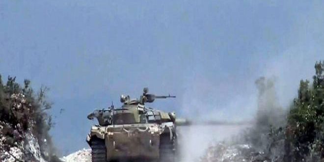ردت وحدات من الجيش العربي السوري عبر ضربات نارية مركزة على تحركات المجموعات الإرهابية التي جددت اعتداءاتها على نقاط عسكرية متمركزة لحماية البلدات الآمنة في ريفي حماة الشمالي وإدلب.