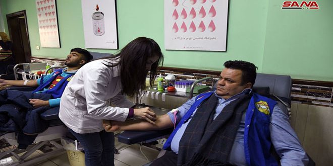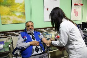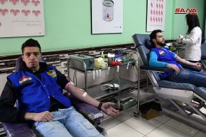 شارك وفد من المنظمات الشبابية التونسي يزور دمشق حاليا بدعوة من منظمة اتحاد شبيبة الثورة بحملة تبرع بالدم دعما لجرحى الجيش العربي السوري وأخرى للتشجير.