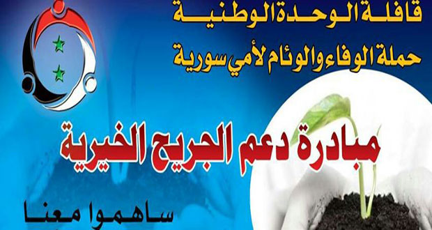 ولفت المحمود إلى أن فريق قافلة الوحدة الوطنية قام بالتعاون مع مكتب الشهداء والجرحى في الدفاع الوطني بزيارة جرحى منطقة الدريكيش والقدموس بمشاركة أطباء معالجة فيزيائية وتم تأمين كل متطلبات الجرحى العلاجية.