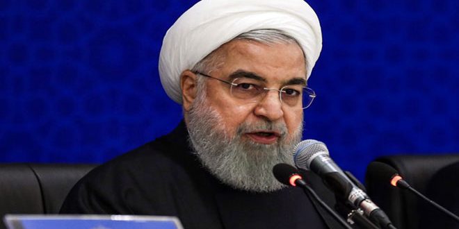 وأشار روحاني إلى أن الشعب الإيراني عبر عن عزمه للتصدي للحظر الذي تفرضه أمريكا على الملاحة البحرية والمصارف والنفط وهو صامد في مواجهة الضغوط والصعوبات.