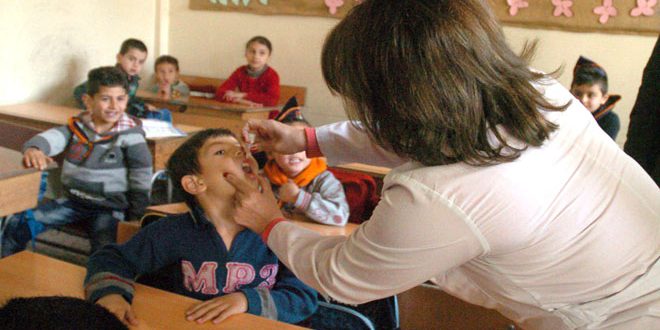وأكد الدكتور عزام النجار رئيس دائرة الصحة المدرسية بحمص أنها قامت بفحص طبي شامل للأطفال الذين يخضعون حاليا لحملة اللقاح والتي تتضمن ثنائي طفلي وشلل لأطفال الصف الأول والثنائي الكهلي لأطفال الصف السادس لافتا إلى أن فرق التلقيح الموءلفة من الصحة المدرسية والصحة العامة ستزور كل مدارس المدينة خلال فترة 20 يوما.