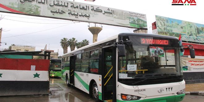 رفدت الشركة العامة للنقل الداخلي في حلب خطوطها العاملة بعشرة باصات حديثة تم تشغيلها ووضعها بالخدمة ليصبح العدد الكلي للباصات التابعة للشركة 116 باصا موزعة على 14 خطا منها 7 خطوط لتخديم احياء المدينة والاخرى مخصصة لخدمة الريف.