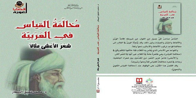 كتاب “مخالفة القياس في العربية” بحث أدبي في الشعر العربي للدكتور محمد شفيق البيطار يسلط فيه الضوء على شعر الأعشى وما خرج فيه عن الأصول والقواعد نحوا وصرفا وعروضا.