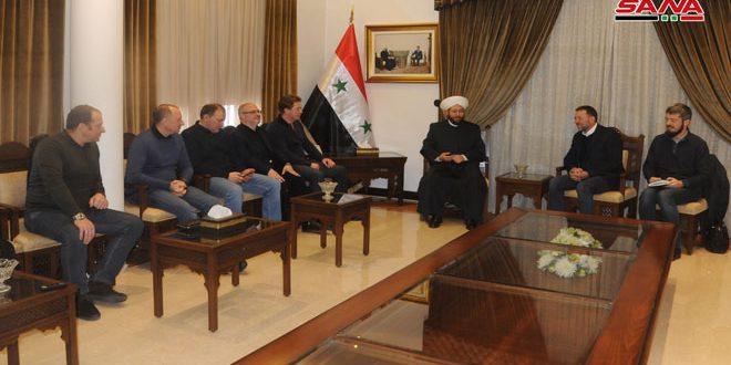 وأشار حسون خلال لقائه اليوم وفدا يترأسه عضو هيئة الرئاسة في المجلس العام لحزب روسيا الموحدة دميتري سابلين إلى أن روسيا وقفت في خندق واحد إلى جانب سورية وشعبها منوهاً بالتضحيات التي قدمها الجنود الروس في المعركة ضد الإرهاب إلى جانب رفاقهم السوريين.