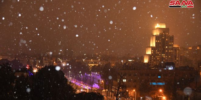 تساقط الثلوج في مدينة دمشق