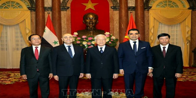 وحمل الرئيس ترونج السفير مصطفى تحياته وتقديره للسيد الرئيس بشار الأسد معبرا عن سروره باستقبال مبعوث دبلوماسي لسورية في بلاده.