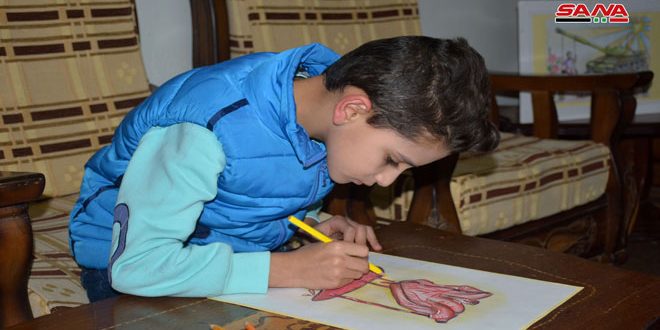 ويحظى علي باهتمام والديه اللذين يحرصان على رعاية موهبة ابنهما من حيث التأهيل والمتابعة والتشجيع والتحفيز وهذا ما لمسته مراسلة سانا لدى زيارة منزل العائلة في مدينة حمص حيث تستقبل الزوار لوحاته الفنية بمواضيعها المتنوعة المعروضة على الجدران.