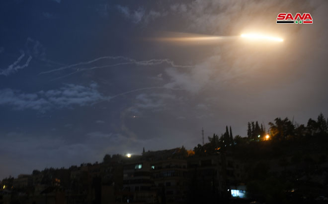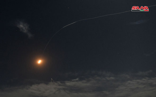 وبين المراسل أن الدفاعات الجوية السورية أسقطت عشرات الأهداف المعادية التي أطلقها العدو الإسرائيلي باتجاه الأراضي السورية.