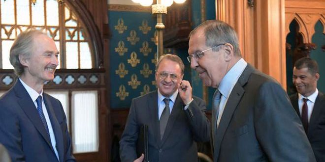 أكد وزير الخارجية الروسي سيرغي لافروف والمبعوث الخاص للأمين العام للامم المتحدة إلى سورية غير بيدرسون ضرورة القضاء كليا على الإرهاب وإعادة الأمن والاستقرار إلى سورية مع احترام سيادتها ووحدة أراضيها.