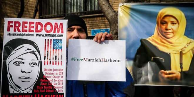 واعتقلت الشرطة الأميركية هاشمي التي تعمل مراسلة لقناة برس تي في الإيرانية الناطقة باللغة الانكليزية لأسباب مجهولة عند وصولها إلى مطار سانت لويس لامبرت الدولي في ميزوري في الـ13 من كانون الثاني الماضي لزيارة شقيقها المريض حيث تم التضييق عليها وتكبيلها بالأغلال وفقا لعائلتها.