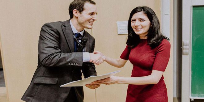 حصلت الطالبة السورية دانيا سمير حميدان على درجة الامتياز مع مرتبة الشرف عن بحثها في رسالة الماجستير باختصاص المعلوماتية الحيوية حول “الجينات المؤثرة بدورة حياة الخلية” وذلك من جامعة زارلاند في ألمانيا.