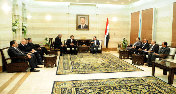 أكد رئيس مجلس الوزراء الدكتور وائل الحلقي خلال لقائه فالنتين ريباكوف نائب وزير خارجية جمهورية بيلاروس والوفد المرافق رغبة الحكومة السورية في تفعيل وتنشيط العلاقات التنموية بين البلدين والارتقاء بها إلى مستوى العلاقات السياسية واهتمامها بفتح قنوات أوسع مع الدول الصديقة وتوسيع قاعدة التجارة البينية.