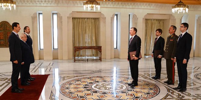 واستقبل الرئيس الأسد السفيرين كلاً على حدة وتبادل معهما الحديث وتمنى لهما النجاح في مهامهما.