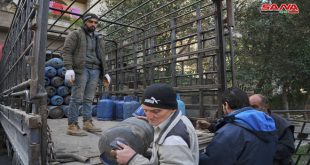 سانا رصدت عملية توزيع مادة الغاز في عدد من أحياء مدينة دمشق حيث أكد عدد من المواطنين في حيي ساروجة وعين الكرش أن انفراجا تدريجيا واستقرارا طرأ على توزيع مادة الغاز ويتم يوميا توزيع مادة الغاز على المواطنين في المنطقتين وذلك عن طريق تسجيل مسبق لدى لجان الأحياء المعنية مؤكدين أن هناك تنظيما واضحا في عمليات توزيع المادة.