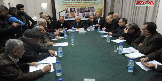 أقامت اللجنة الشعبية العربية السورية لدعم الشعب الفلسطيني بالتعاون مع مؤسسة القدس الدولية وفصائل المقاومة الفلسطينية في دمشق اليوم ملتقى سياسيا في مقر اللجنة دعما للأسرى والمعتقلين في سجون العدو الصهيوني وتأكيدا على الوقوف إلى جانب سورية في تصديها للعدوان الصهيوني والإرهاب التكفيري وداعميه.