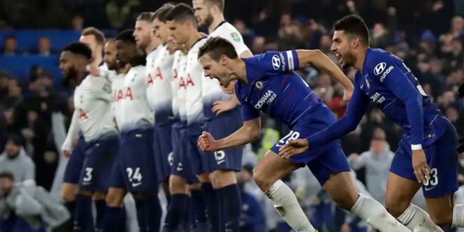 بلغ تشيلسي نهائي كأس رابطة الأندية الانكليزية بكرة القدم عقب فوزه بركلات الترجيح على توتنهام هوتسبير بعد تعادل الفريقين 2-2 بمجموع مباراتي الذهاب والإياب.