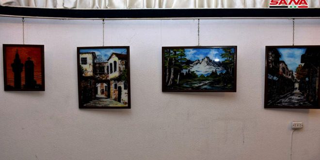 أقيم اليوم معرض للفنانة التشكيلية من ذوي الاحتياجات الخاصة دعاء البسطاطي تضمن لوحات بمواضيع مختلفة جسدت الطبيعة السورية والبيوت الدمشقية القديمة والحارات الحلبية وغيرها من المواضيع بطريقة الرسم العكسي على الزجاج رسمتها بقدميها.