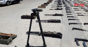 وخلال استكمال أعمال تأمين المناطق التي طهرها الجيش من الإرهاب في ريف دمشق ومحيطها عثرت الجهات المختصة في الـ 23 من الشهر الجاري على “قواذف بي 10 و بي 7 وقواذف آر بي جي متنوعة العيارات ومدافع عيار 82 و 62 مع عدد كبير من قذائفها وحشواتها وصواريخ مضادة للدروع بينها 14 صاروخا من نوع لاو وقناصات شتاير غربية المنشأ وأكثر من 200 ألف طلقة للأسلحة الرشاشة والبنادق الحربية إضافة إلى جهاز بث فضائي وعدد من مناظير الأسلحة الرشاشة”.