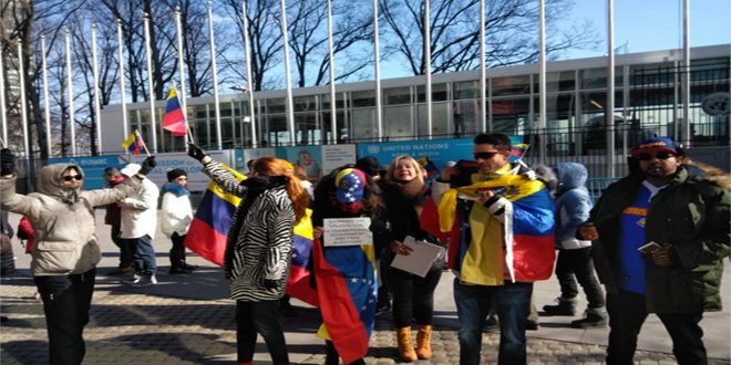 وذكرت وكالة سبوتنيك موندو على موقعها باللغة الاسبانية أن المحتشدين ساروا في شوارع نيويورك وواشنطن وسان خوسيه وميامي ودالاس وبيتسبرغ ومينيابوليس ورفعوا لافتات كتب عليها “ارفعوا أيديكم عن فنزويلا” و”مادورو صديقنا .. الناس كلها معك” .