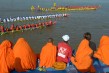 كومبوديون يشاركون بتجديف قواربهم والتي تدعى “قوارب التنين” في نهر الـ Tonle Sap وذلك خلال مشاركتهم في مهرجان الماء.