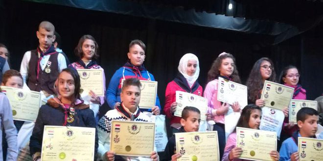 بحضور الأهالي وفعاليات رسمية وحزبية كرمت منظمة طلائع البعث اليوم 34 رائدا ورائدة على مستوى سورية بمختلف المجالات وذلك على مسرح الزهراوي بحمص.