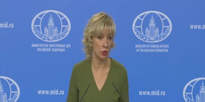 ودعت زاخاروفا واشنطن إلى سحب قواتها المتواجدة بشكل غير شرعي في سورية بأسرع ما يمكن وعودة جميع الأراضي إلى سيادة الدولة السورية.