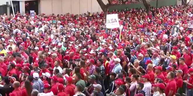 خرجت حشود من المواطنين الفنزويليين اليوم إلى شوارع العاصمة كراكاس تعبيرا عن تأييدهم للرئيس الفنزويلي نيكولاس مادورو.