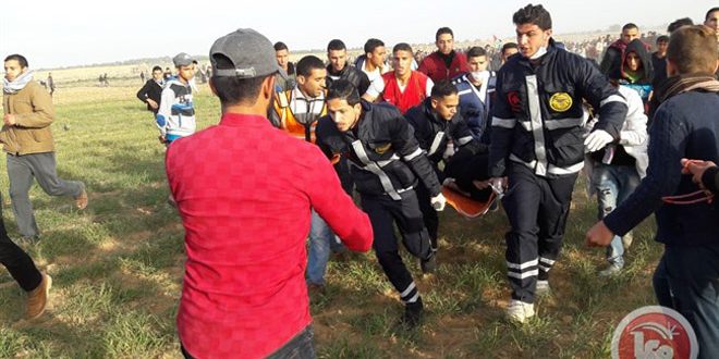 وذكرت وكالة وفا أن قوات الاحتلال أطلقت الرصاص الحي وقنابل الغاز السام على المشاركين في مسيرات العودة شرق مدينة غزة وشرق بلدة جباليا شمال القطاع والبريج وسطه وخان يونس جنوبه ما أدى إلى إصابة 33 فلسطينيا بجروح بينهم مصور صحفي ومسعفان والمئات بحالات اختناق.