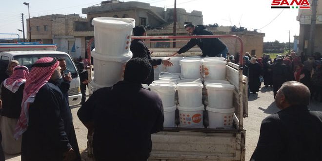 وأوضح عضو المكتب التنفيذي عن قطاع الصحة والإغاثة والشؤون الاجتماعية في المحافظة صالح سويد في تصريح لسانا أن توزيع المساعدات يأتي لدعم المرأة التي عانت من الإرهاب.