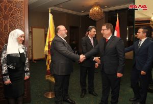 من جانبه أكد نائب وزير الخارجية والمغتربين الدكتور فيصل المقداد أن العلاقات بين البلدين وطيدة وتقوم على التعاون والاحترام المتبادل والتشارك في قيم ومثل نبيلة تحترم سيادة الدول واستقلالها لافتا إلى رغبة البلدين بالارتقاء بمستوى العلاقات.