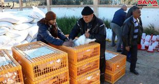 استفاد 150 مربيا من قريتي الحوز والدوير بريف حمص من منحة الدجاج البياض المقدمة من وزارة الزراعة ومنظمة الفاو ضمن مشروع تطوير الثروة الحيوانية.