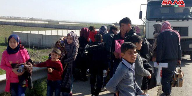 في إطار الجهود التي تبذلها الحكومة لإعادة المهجرين السوريين بفعل الإرهاب عادت اليوم دفعة جديدة من العائلات المهجرة بمخيمات اللجوء في الأردن عبر مركز نصيب جابر- الحدودي إلى قراهم المحررة من الإرهاب.