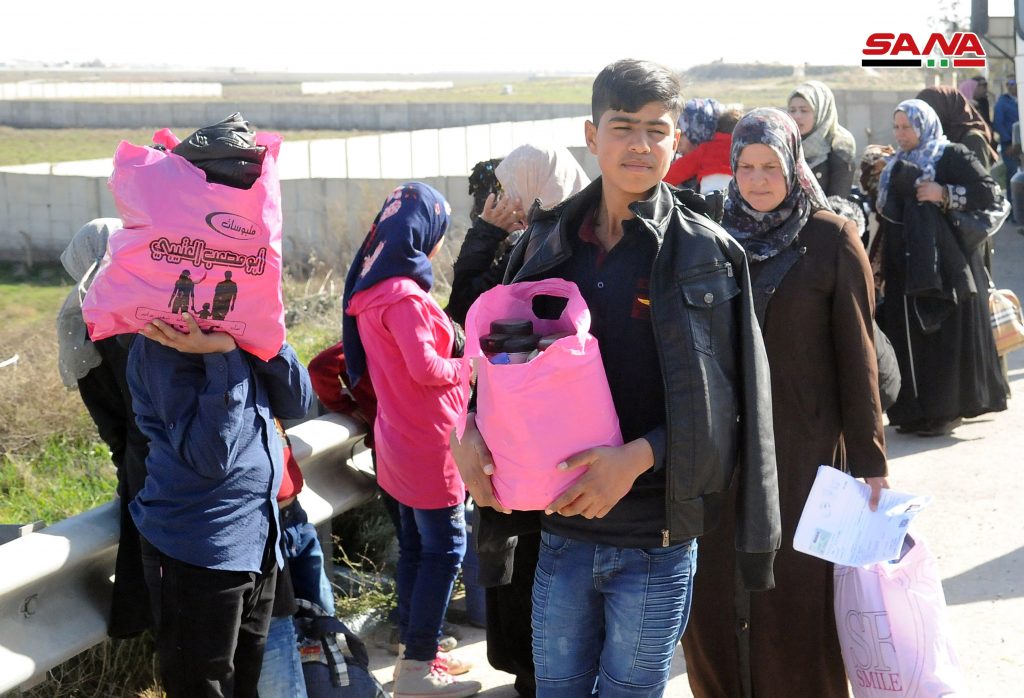 وذكرت مراسلة سانا من مركز نصيب بريف درعا الجنوبي الشرقي أن عددا من العائلات عادت إلى الوطن قادمة من مخيمات اللجوء في الأردن عبر المركز الحدودي تمهيدا لنقلهم إلى بلداتهم وقراهم التي حررها الجيش العربي السوري من الإرهاب في حين أمنت لها الجهات المعنية البنى التحتية والخدمات الرئيسة التي تساعدهم على الاستقرار وإعادة نشاطاتهم اليومية المعتادة.