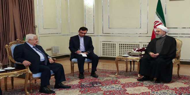 استقبل الرئيس الإيراني حسن روحاني صباح اليوم وليد المعلم نائب رئيس مجلس الوزراء وزير الخارجية والمغتربين والوفد المرافق حيث نقل المعلم إلى الرئيس الإيراني تحيات السيد الرئيس بشار الأسد وتمنياته له وللشعب الإيراني بدوام التقدم والازدهار.